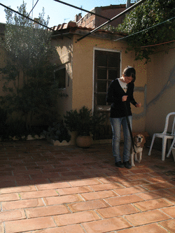 Première leçon de marche en laisse pour Ella, chienne adulte, et sa compagne humaine. Ella est réactive + sur congénères notamment en laisse, suite à des blessures causées par un chien errant.